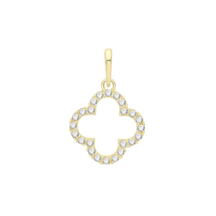 9ct Gold 10mm Cubic Zirconia Set Quatrefoil Pendant