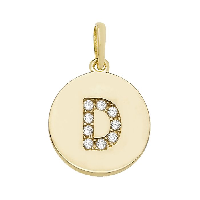 9ct gold 12mm Cubic zirconia round disc initial D pendant.