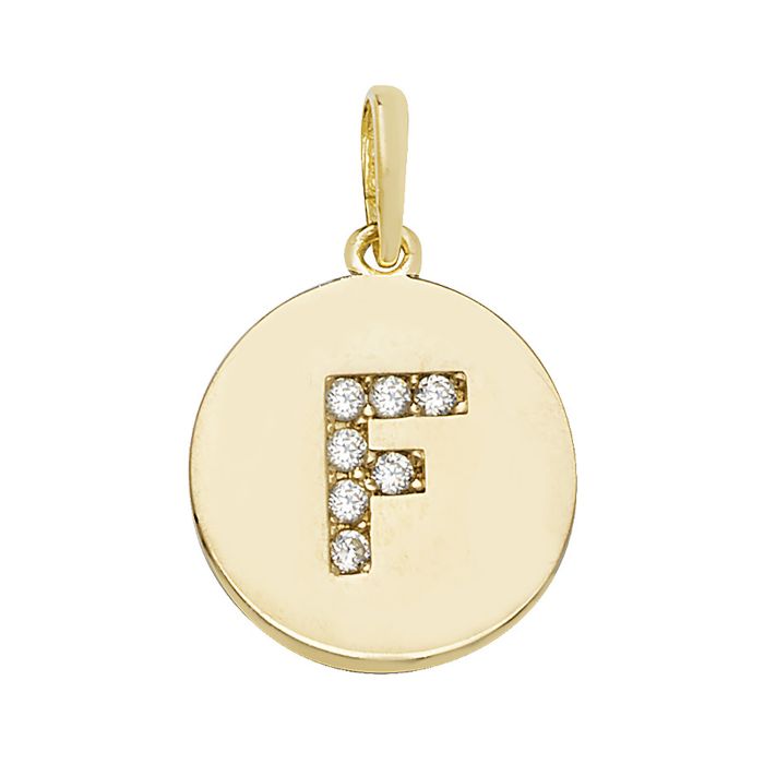 9ct Gold 12mm Cubic Zirconia Round Disc Initial F Pendant