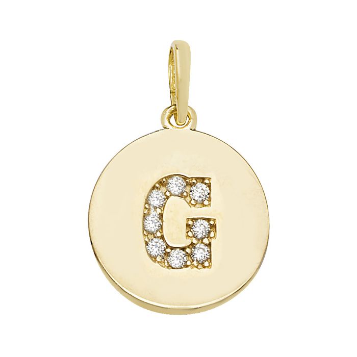9ct Gold 12mm Cubic Zirconia Round Disc Initial G Pendant