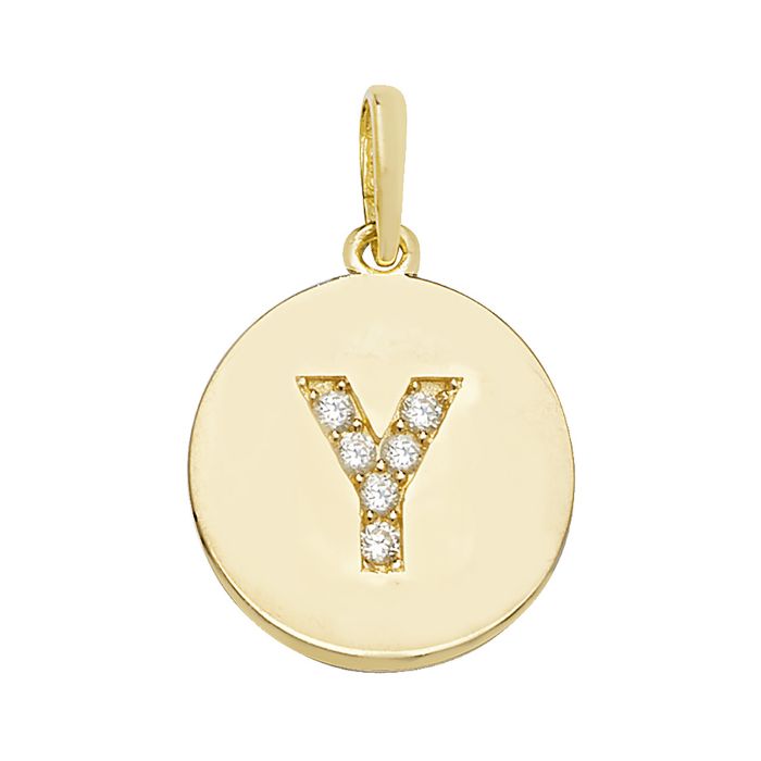 9ct Gold 12mm Cubic Zirconia Round Disc Initial Y Pendant