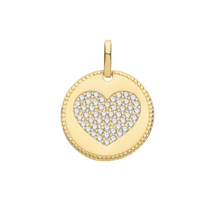 9ct Gold 14mm Fancy Edged Round Heart Cubic Zirconia Pendant