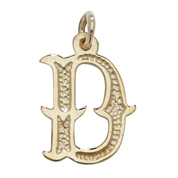 Description / 9ct Gold 14mm Gothic Initial D Pendant