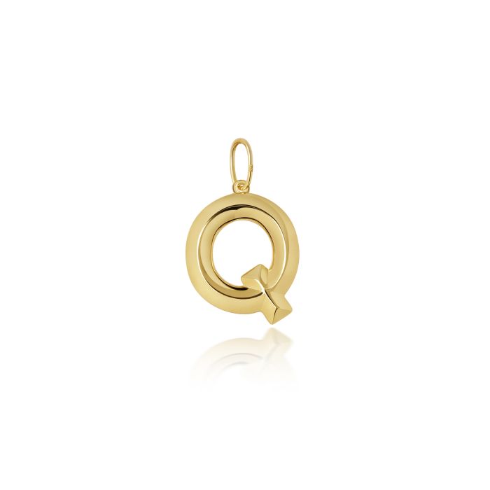 Description / 9ct Gold 14mm Plain Initial Q Pendant