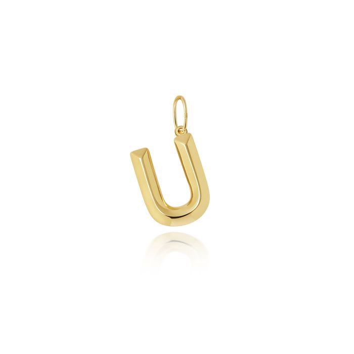 Description / 9ct Gold 14mm Plain Initial U Pendant