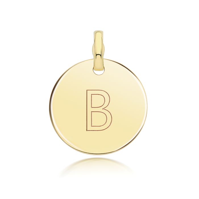 Description / 9ct Gold 14mm Round Disc Initial B Pendant