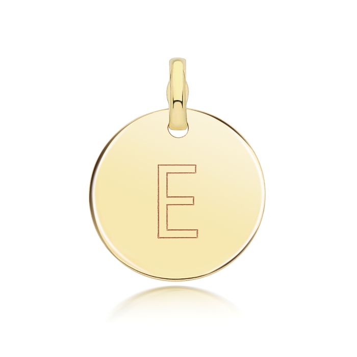9ct Gold 14mm Round Disc Initial E Pendant