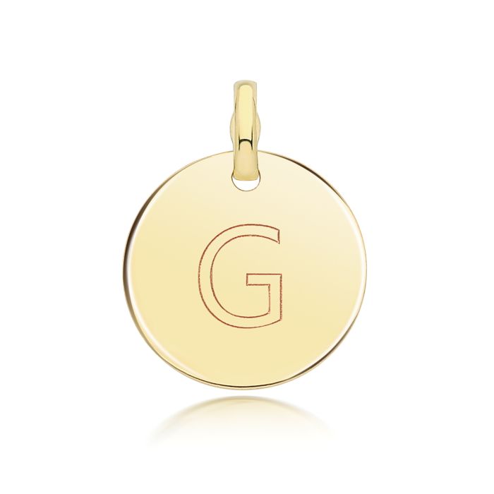 Description / 9ct Gold 14mm Round Disc Initial G Pendant