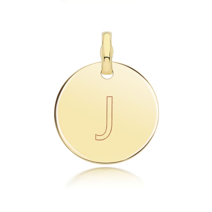 Description / 9ct Gold 14mm Round Disc Initial J Pendant