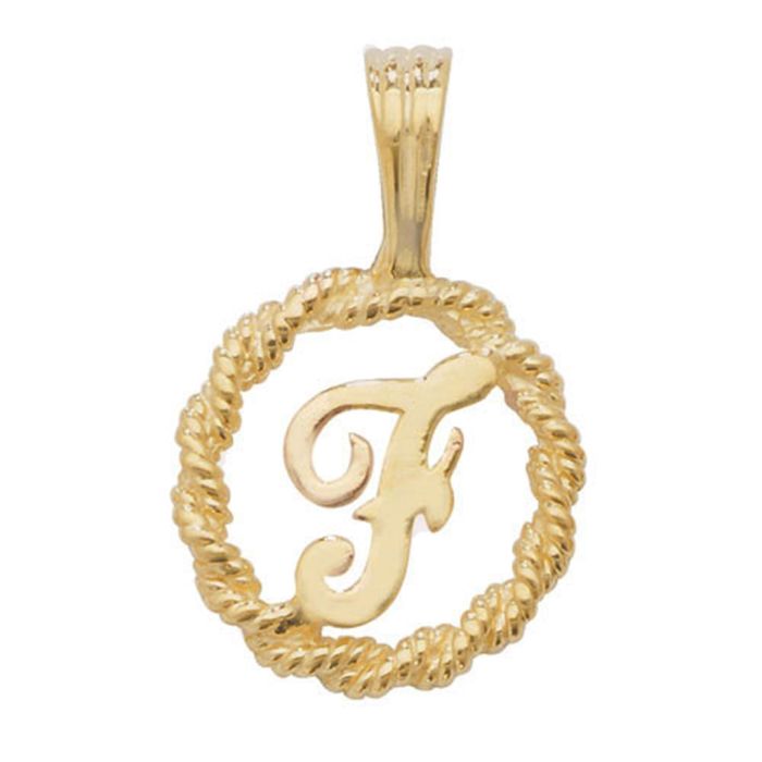 9ct Gold 14mm Round Rope Edge Initial F Pendant