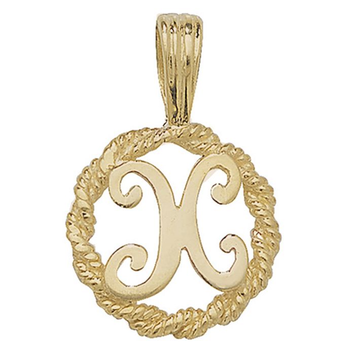 9ct Gold 14mm Round Rope Edge Initial X Pendant