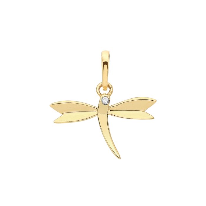 9ct Gold 14mm Single Cubic Zirconia Dragonfly Pendant