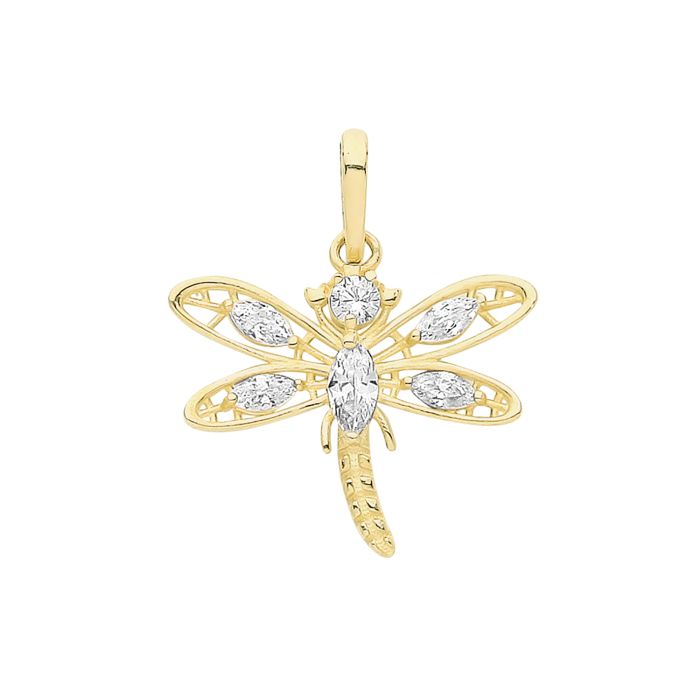 9ct Gold 15mm Cubic Zirconia Dragonfly Pendant