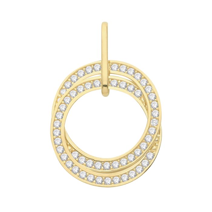 Description / 9ct Gold 16mm Cubic Zirconia Double Circle Twist Pendant