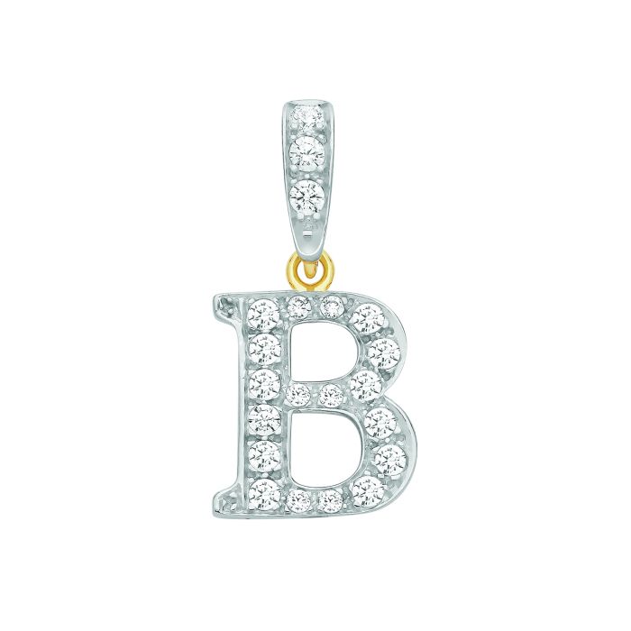 Description / 9ct Gold 18mm Cubic Zirconia Initial B Pendant