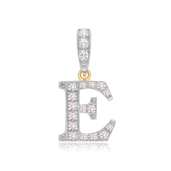 Description / 9ct Gold 18mm Cubic Zirconia Initial E Pendant