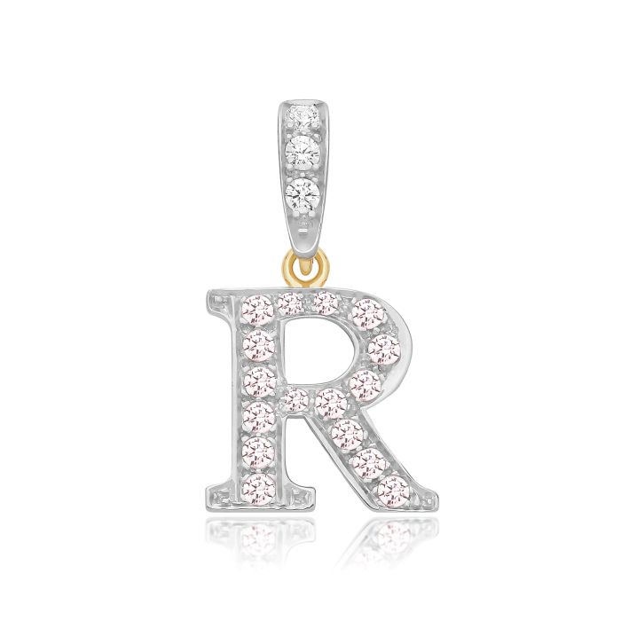 Description / 9ct Gold 18mm Cubic Zirconia Initial R Pendant