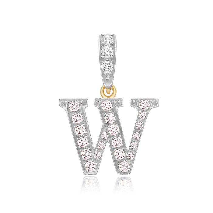 Description / 9ct Gold 18mm Cubic Zirconia Initial W Pendant