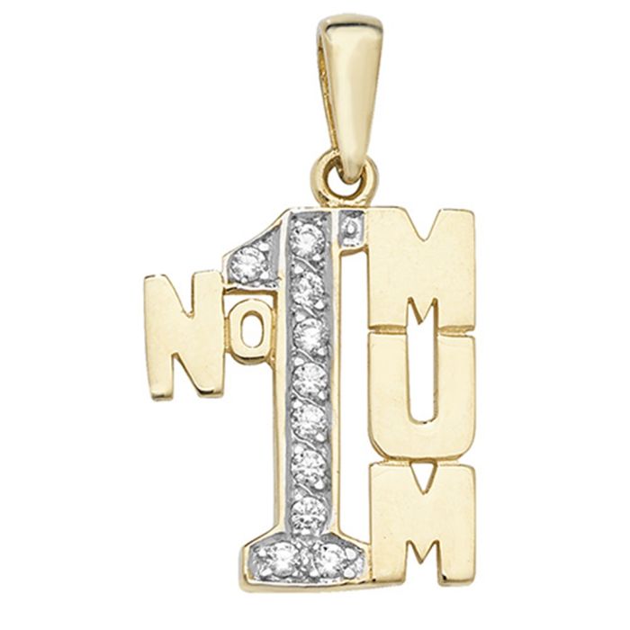 9ct gold 20mm cubic zirconia number one mum pendant.