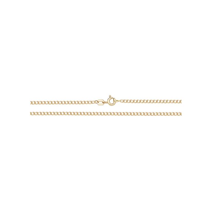 9ct gold 2mm flat curb chain necklace.Available in lengths 16, 18, 20, 22 and 24 inch.Approximate chain weights are:16 inch = 2.2 grams.18 inch = 2.4 grams.20 inch = 2.6 grams.22 inch = 2.9 grams.24 inch = 3.2 grams.The chain will come to you in a black leatherette gift box with a World of Jewellery cleaning cloth.
