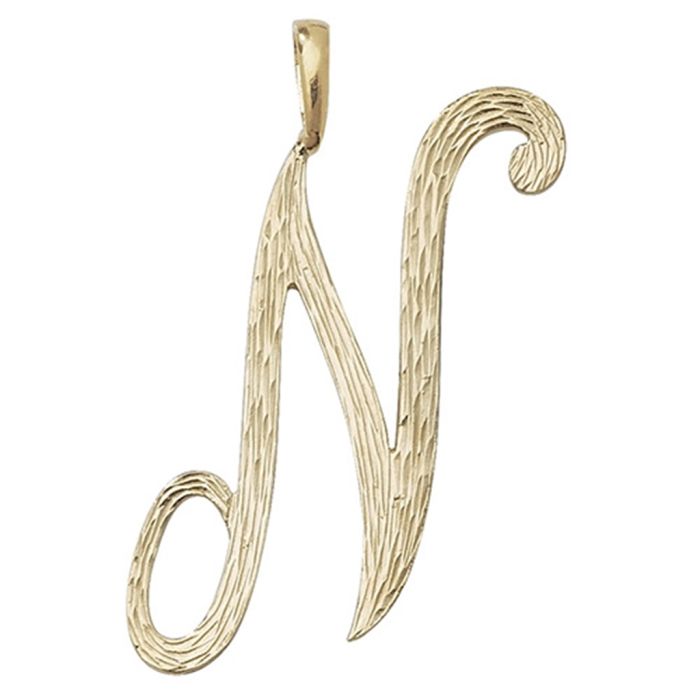 9ct Gold 30mm Plain Barked Script Initial N Pendant