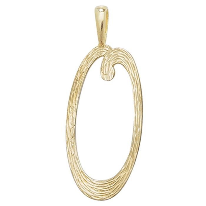 Description / 9ct Gold 30mm Plain Barked Script Initial O Pendant