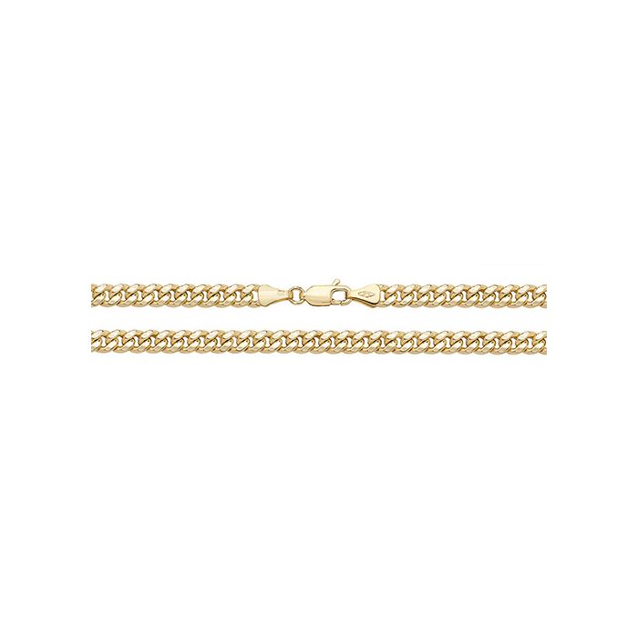 9ct gold 4mm semi solid cuban curb chain necklace.Available in lengths 18, 20, 22, 24, 26, 28 and 30 inch.Approximate chain weights are:18 inch = 10 grams.20 inch = 11 grams.22 inch = 12 grams.24 inch = 13 grams.26 inch = 14 grams.28 inch = 15 grams.30 inch = 16 grams.The chain will come to you in a black leatherette gift box with a World of Jewellery cleaning cloth.