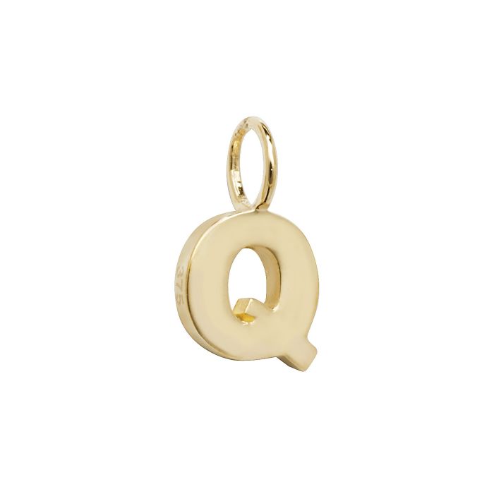 9ct gold 6mm plain initial Q pendant.Approximate pendant height 6mm (excluding bale) x width 6mm.Approximate pendant weight is 0.4 grams.If a chain is selected it will be a 9ct gold 1.2mm wide trace chain.The pendant will come to you in a black leatherette gift box with a World of Jewellery cleaning cloth.