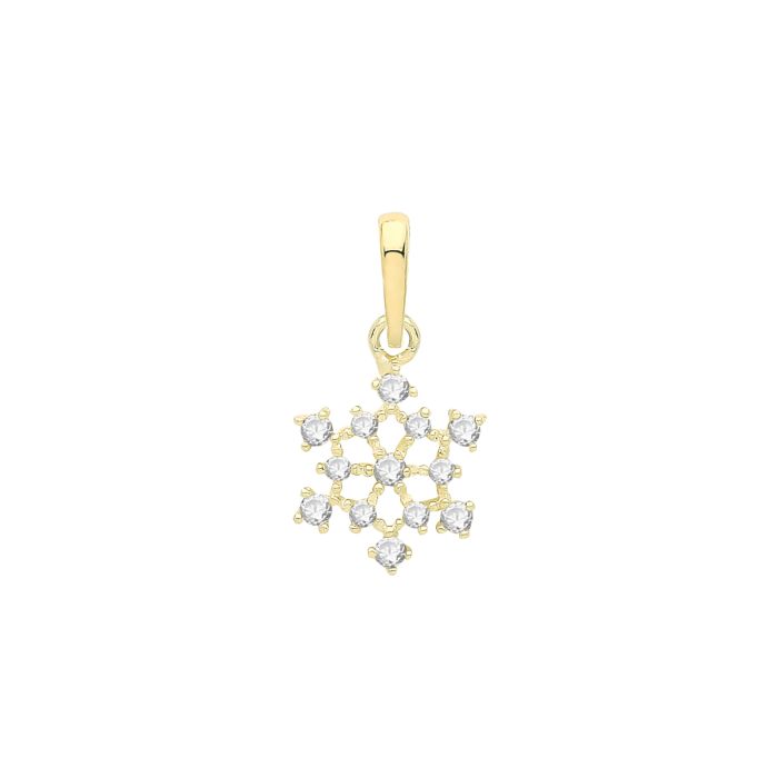 9ct Gold 8mm Cubic Zirconia Set Snowflake Pendant