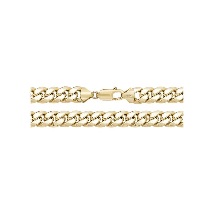 9ct gold 8mm semi solid cuban curb chain necklace.Available in lengths 20, 22 and 24 inch.Approximate chain weights are:20 inch = 42.6 grams.22 inch = 46.9 grams.24 inch = 51.2 grams.The chain will come to you in a black leatherette gift box with a World of Jewellery cleaning cloth.
