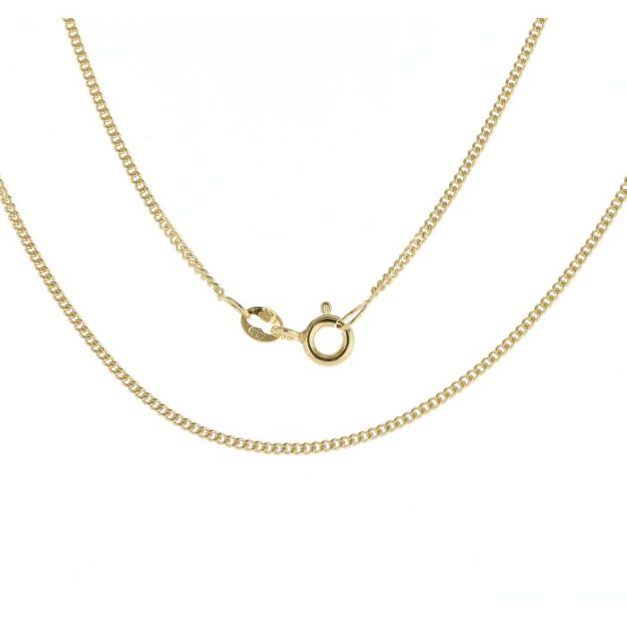 9ct gold 1.2mm close curb chain necklace.Available in lengths 14, 16, 18, 20, 22 and 24 inch.Approximate chain weights are:14 inch = 1.7 grams.16 inch = 1.9 grams.18 inch = 2.1 grams.20 inch = 2.3 grams.22 inch = 2.5 grams.24 inch = 2.7 grams.The chain will come to you in a black leatherette gift box with a World of Jewellery cleaning cloth.