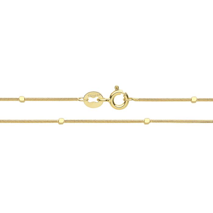 9ct gold 0.8mm snake and 1.4mm square bead anklet.