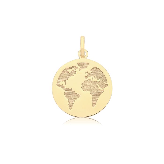 Description / Boys 9ct Gold 10mm Round Engraved World Pendant