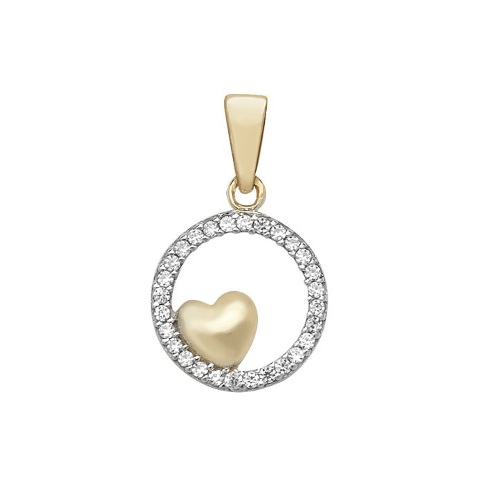 Boys 9ct gold 11mm round cubic zirconia heart pendant.