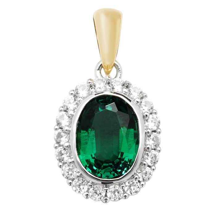 Description / Boys 9ct Gold 12mm Fancy Created Emerald and White Sapphire Oval Pendant