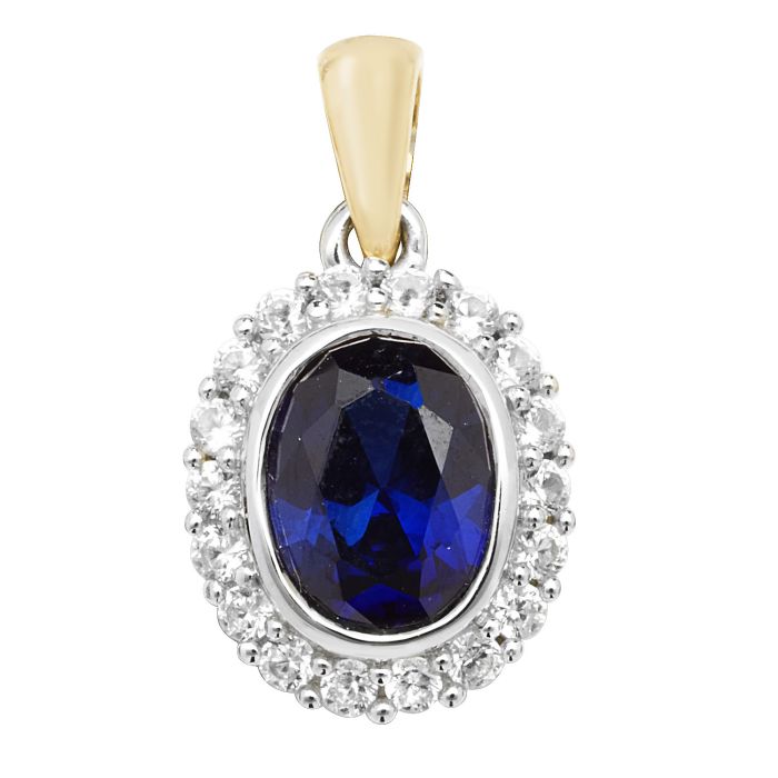 Description / Boys 9ct Gold 12mm Fancy Created Sapphire and White Sapphire Oval Pendant