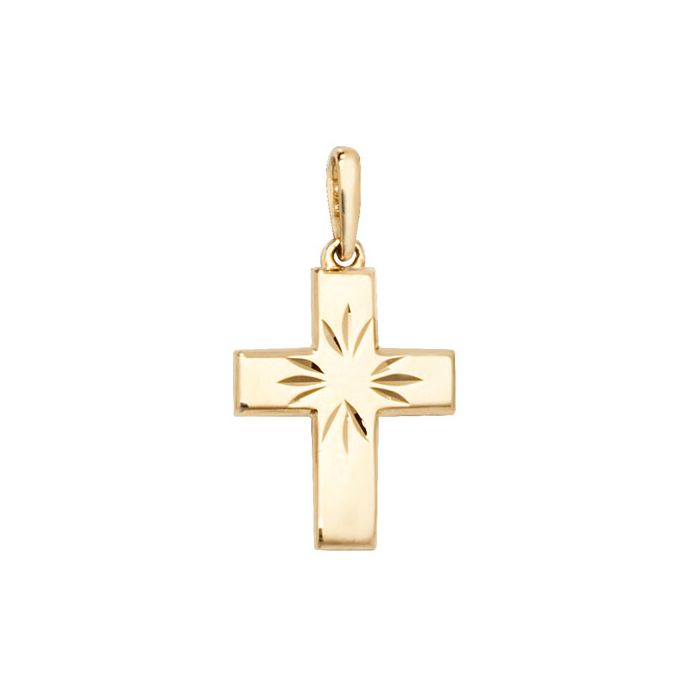 Description / Boys 9ct Gold 13mm Star Engraved Cross Pendant