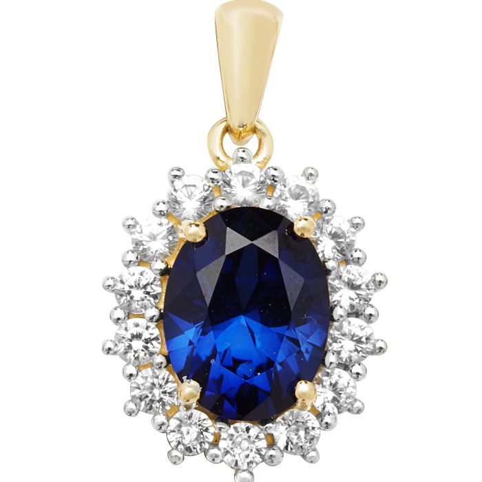 Boys 9ct Gold 14mm Created Sapphire and White Sapphire Oval Pendant