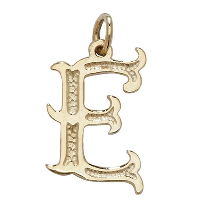 Description / Boys 9ct Gold 14mm Gothic Initial E Pendant