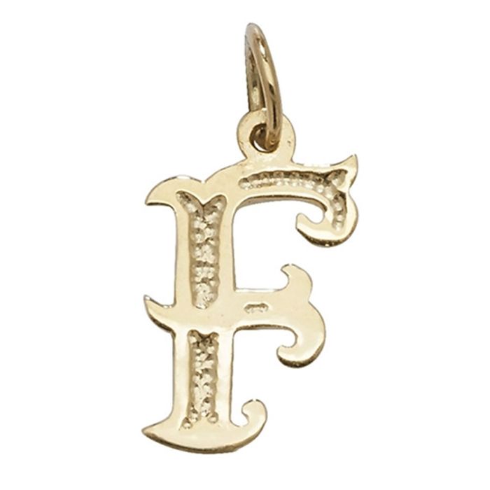 Description / Boys 9ct Gold 14mm Gothic Initial F Pendant
