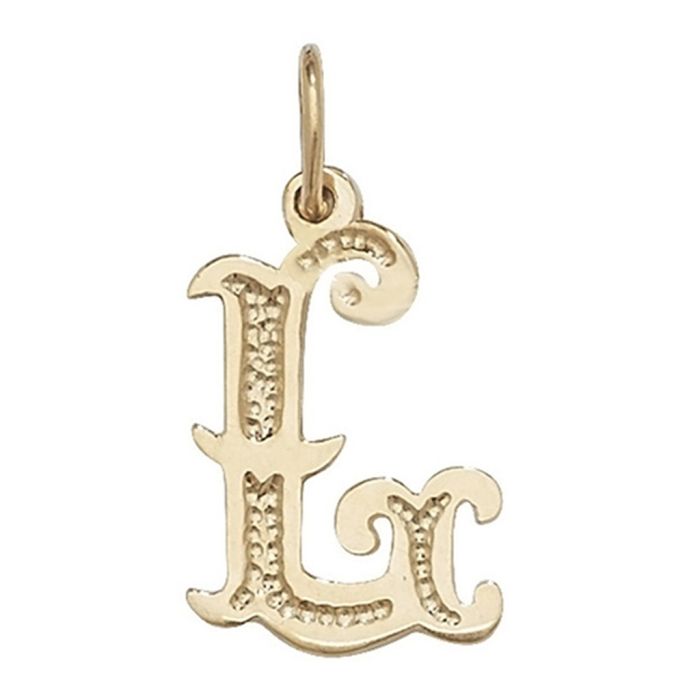 Description / Boys 9ct Gold 14mm Gothic Initial L Pendant