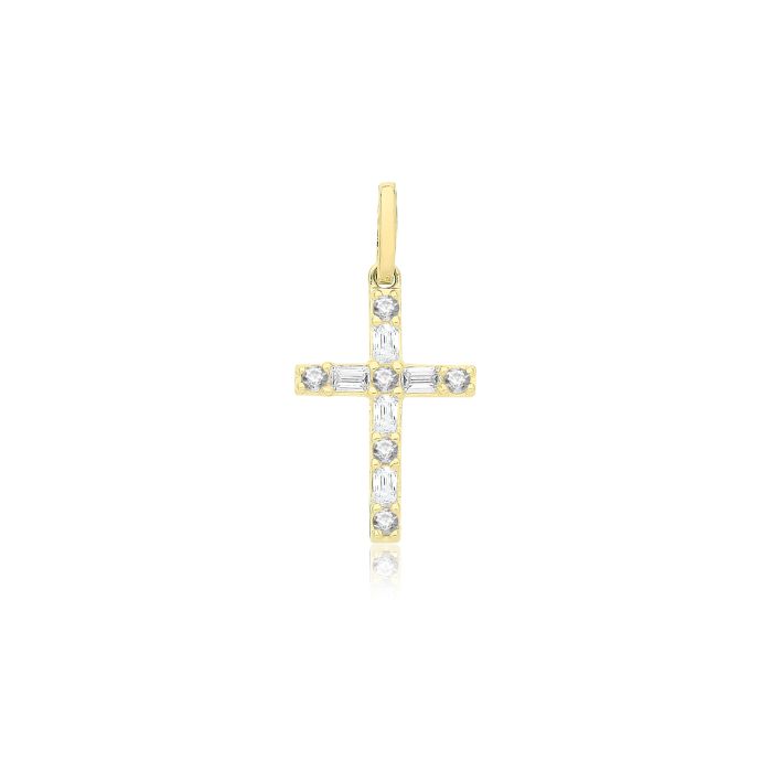 Boys 9ct gold 15mm cubic zirconia cross pendant.