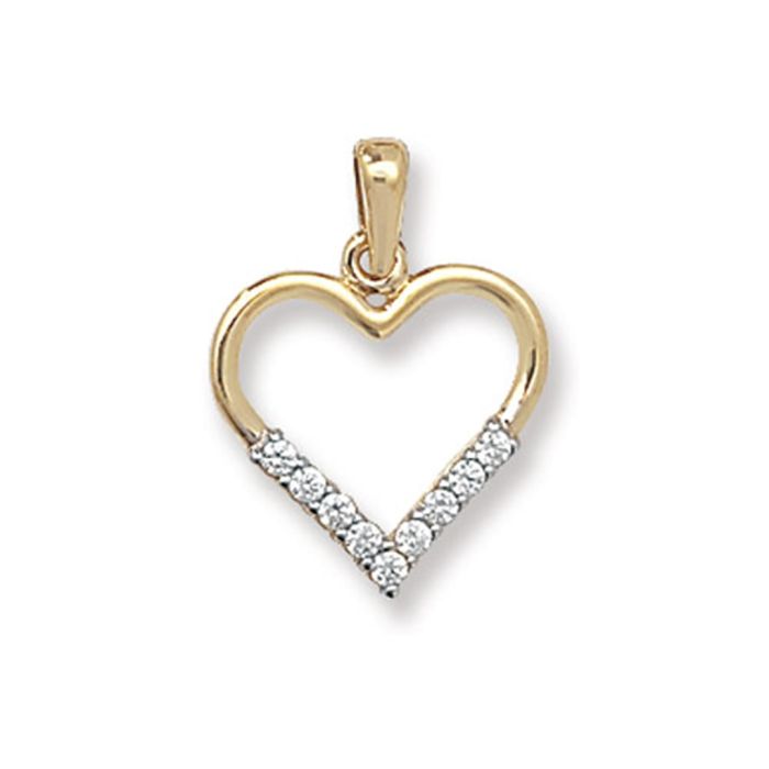 Boys 9ct gold 15mm open heart cubic zirconia pendant.