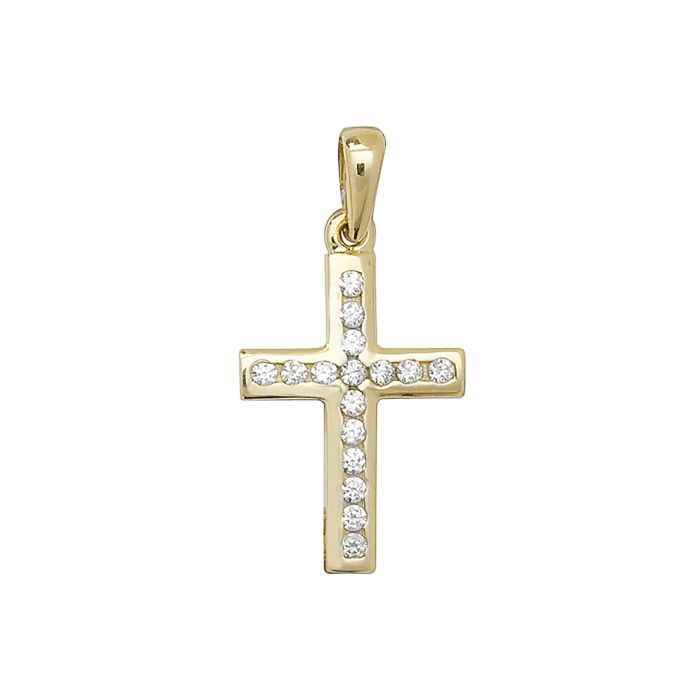 Description / Boys 9ct Gold 16mm Cubic Zirconia Cross Pendant