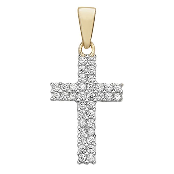 Boys 9ct Gold 16mm Double Row Cubic Zirconia Cross Pendant