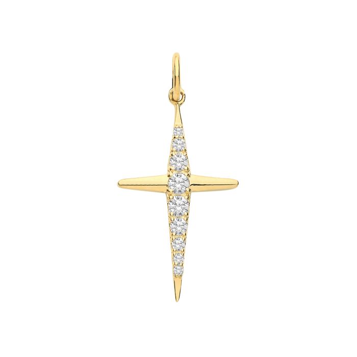 Description / Boys 9ct Gold 19mm Cubic Zirconia Set Cross Pendant