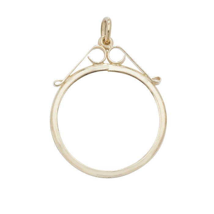 Boys 9ct gold 20mm diameter plain round scroll top half sovereign coin mount pendant.