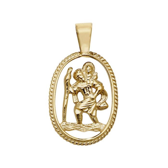 Boys 9ct gold 22mm plain rope edge oval cut out st christopher pendant.