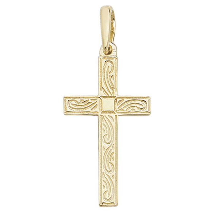 Description / Boys 9ct Gold 25mm Engraved Cross Pendant