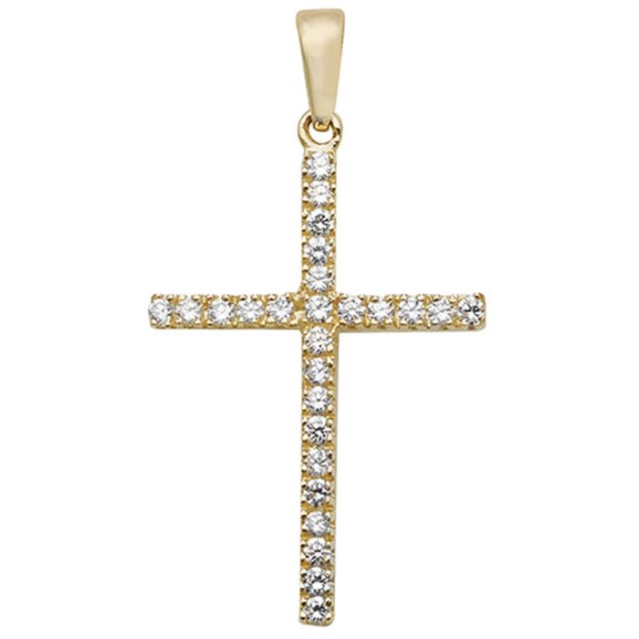 Description / Boys 9ct Gold 26mm Cubic Zirconia Cross Pendant